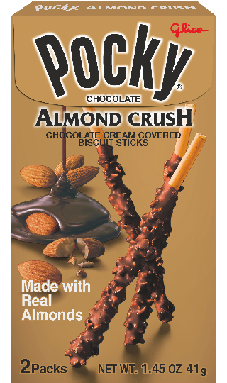Selain wilayah Asia, Pocky varian Almond Crush ini juga terdapat di Amerika Serikat dan memiliki perbedaan kemasan juga dengan wilayah lainnya. Kemasan pada wilayah Amerika Serikat didominasi oleh warna coklat dan menonjolkan produk serta fokus utamanya, kacang almon dan coklat.